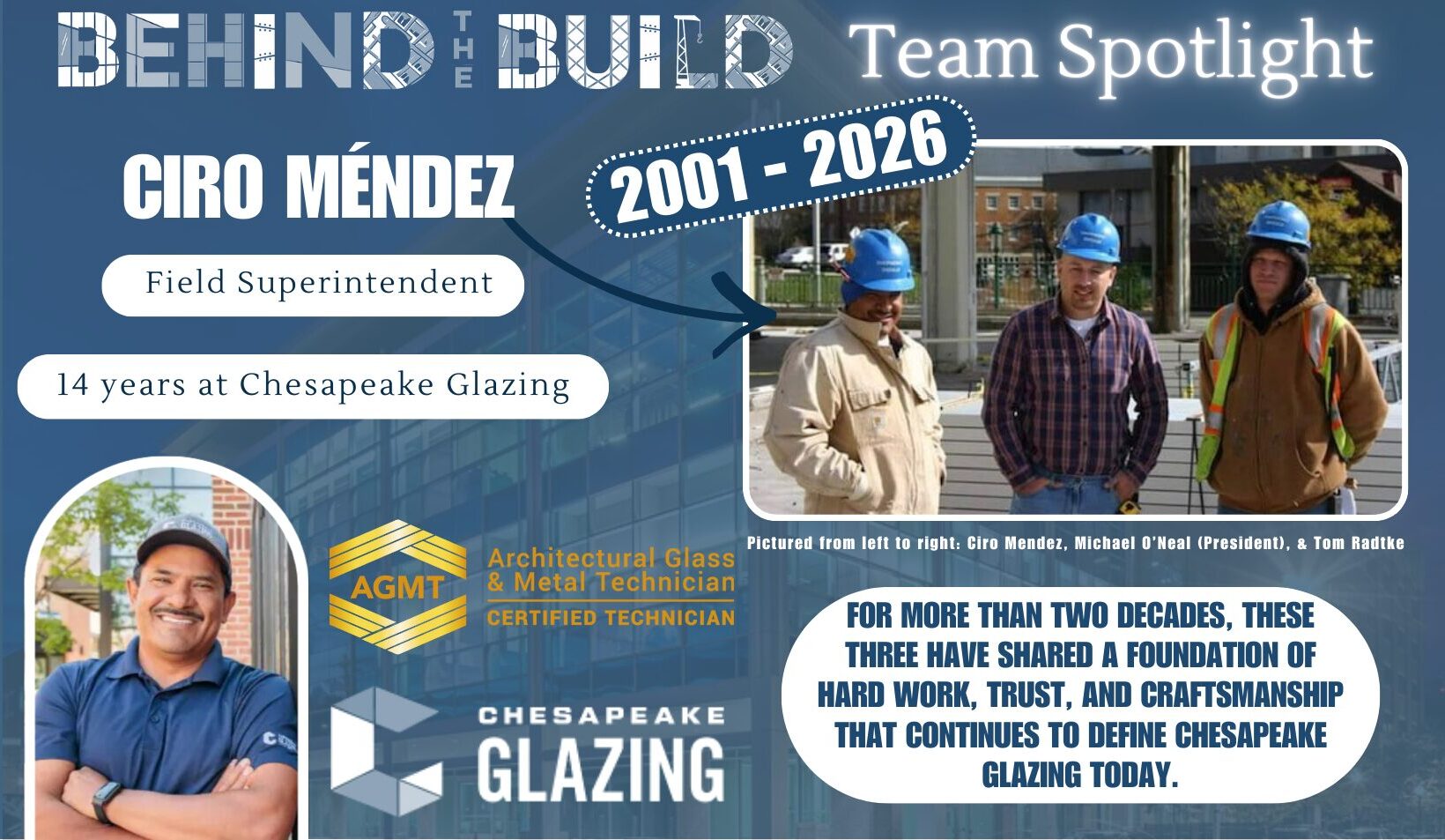 We are proud to have Ciro representing Chesapeake Glazing each day. His story is a reminder that growth comes from commitment, opportunity, and people who take pride in what they build.